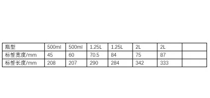 塑料瓶标签贴标机,设备2010年投入生产,2021年5月停用,停机前全部功能正常,部件齐全,较高速度每小时:45000(瓶),现有转换件能生产参数标签长度参数如下: