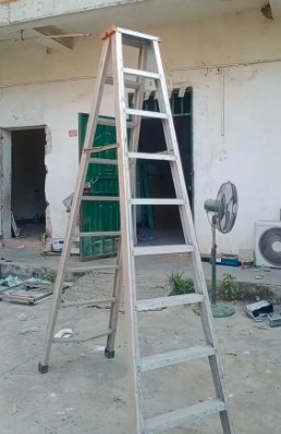 100块自提。高度二米。外地的运费自理。 下面的一个踏步弯了但不影响使用。二手物品售出不退不换。以上图片为实物拍摄